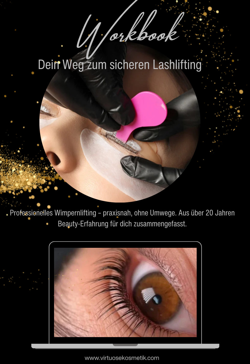 Entdecke das exklusive Workbook Lifted by Virtuose® – dein Leitfaden für professionelles, sicheres und strukturiertes Wimpernlifting.
